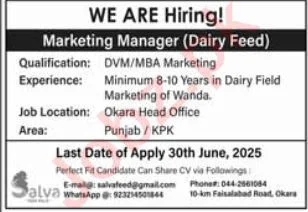 If you’re passionate about dairy feed marketing and ready to take a leadership role, this position in Okara could be the perfect fit. Don’t miss your chance — apply now before the deadline.
